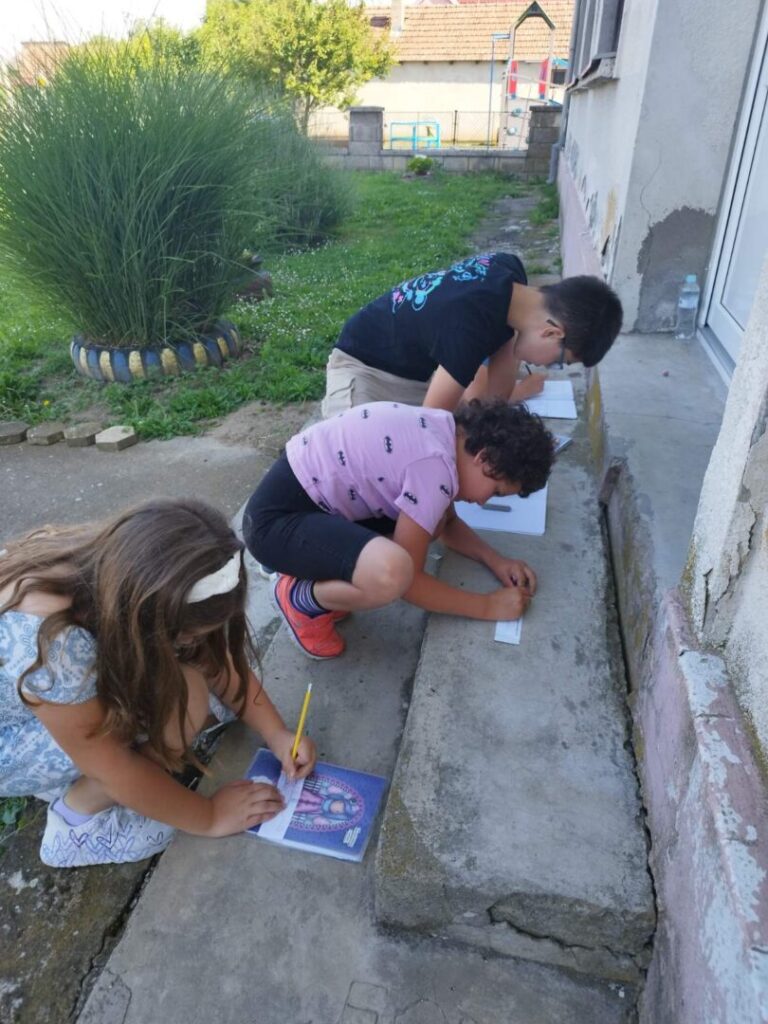 Dolaskom lijepog vremena, učenicima je sve teže sjediti u učionici. Uz pomoć matematičkih kartica učenici 4. razreda PŠ Ostrovo ponavljali su nastavne sadržaje iz matematike u školskom dvorištu. Zadatci su bili raspoređeni po školskom dvorištu, a učenici su trebali doći do zadatka, upamtiti ga, vratiti se do svoje bilježnice, zapisati ga i zatim riješiti. Kada su bili gotovi s jednom grupom zadataka, na kontrolnoj ploči mogli su provjerili točnost svojih zadataka. Za to vrijeme, učenice 2. razreda po školskom dvorištu tražile su skrivene matematičke zadatke. Na svakom listiću se nalazio zadatak s tablicom množenja ili dijeljenja. Matematika u pokretu učenicima je bila veoma zanimljiva, te nestrpljivo iščekuju idući sat matematike.