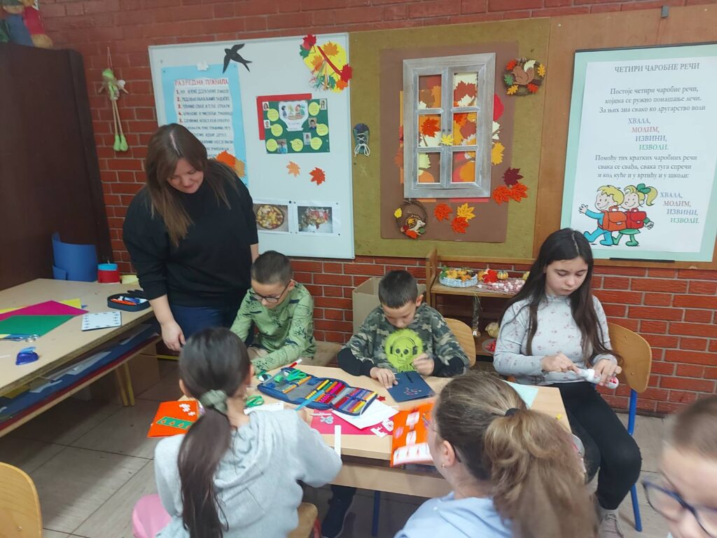 24.11.2025. наша школа је угостила гђу Сандру Добрић, чланицу удржења “Златне руке” из Маркушице која је заједно с ученицима разредне наставе и њиховим учитељицама израдила честитке које ће наши ученици слати институцијама, удружењима, установама и осталим пословним субјектима наше локалне заједнице. Како изгледа њихов труд, рад и лепе жеље можете да погледате на приложеним фотографијама. Радионица је планирана Развојним планом школе.